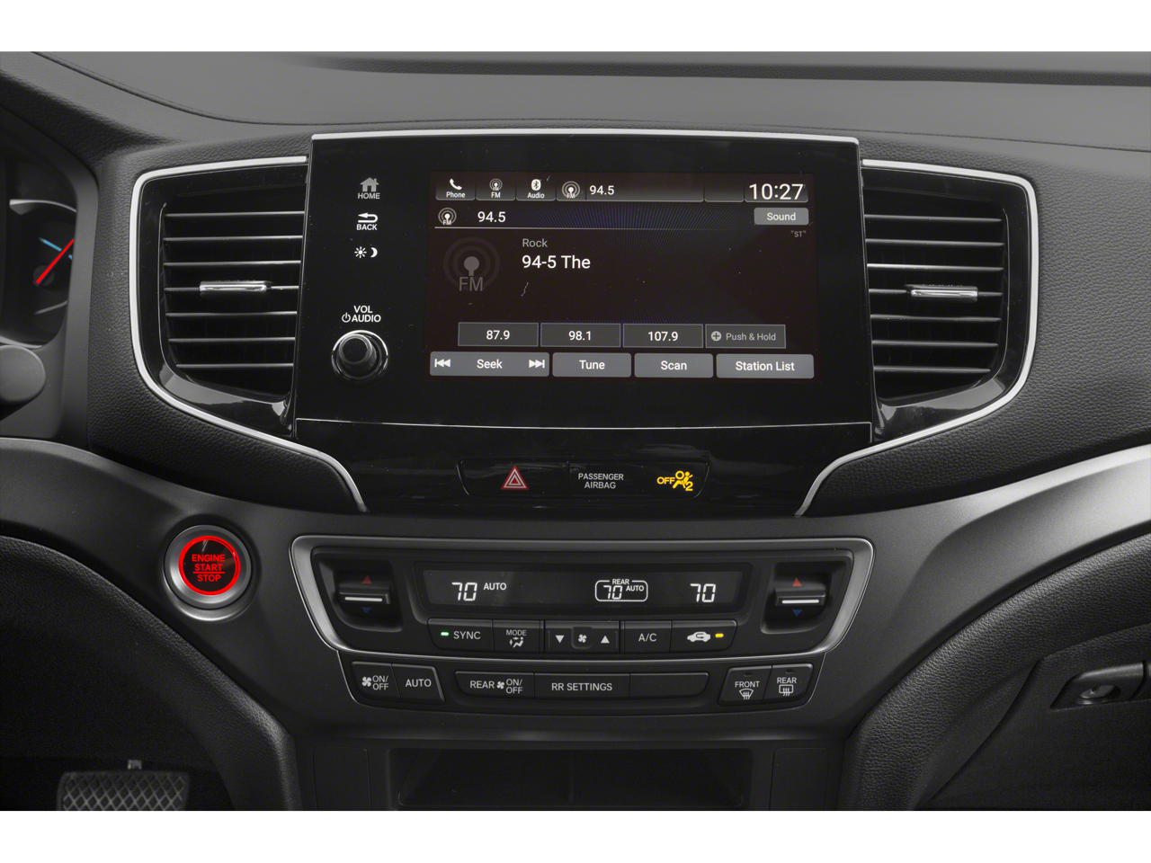 - Radio: 215-Watt Audio System w/7 Speakers -inc: subwoofer, 8" display audio w/high-resolution electrostatic touch-screen and customizable feature settings, Bluetooth® HandsFreeLink, Bluetooth® streaming audio, MP3/auxiliary input jack in center console, Radio Data System (RDS), Speed-Sensitive Volume Compensation (SVC), 2.5-amp USB charging port in center console, 12-volt power outlets in front and center console, HondaLink, Apple CarPlay integration, Android Auto integration and 2.5-amp USB smartphone/audio interface port in front console