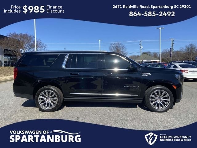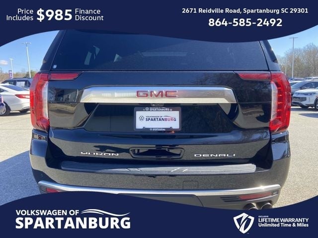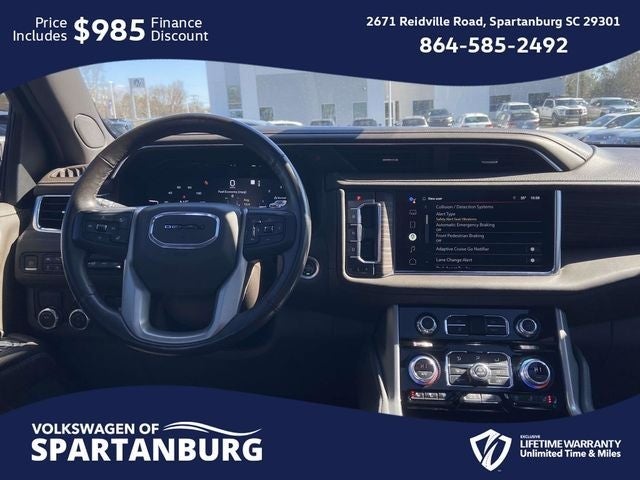 CARFAX 1-Owner, Lifetime Powertrain Warranty, 15 Diagonal Multi-Color Head-Up Display, 2 Presets For Outside Rearview Mirrors, 3 Years of GMC Connected Services, 3rd Row 60/40 Power-Folding Split-Bench Seat, Adaptive Cruise Control, Adaptive suspension, Advanced Security Package, Advanced Technology Package, Alloy wheels, Apple CarPlay/Android Auto, Auto High-beam Headlights, Auto-dimming door mirrors, Auto-dimming Rear-View mirror, Auto-leveling suspension, Automatic Stop/Start, Automatic temperature control, Bright Front & Rear Door Sill Plates, Chrome Door Handles w/Body-Color Strip, Denali Premium Package, Dual Exhaust System, Dual-Pane Panoramic Power Sunroof, Extra Capacity Cooling System, Floor Console, Forward Collision Alert, Front & Rear Park Assist, Front dual zone A/C, Fully automatic headlights, Galvano Bodyside Moldings, Glass Breakage Sensor, Hands-Free Power Programmable Rear Liftgate, HD Surround Vision, Heads-Up Display, Heated & Ventilated Driver & Front Passenger Seats, Heated 2nd Row Outboard Position Seats, Heated Driver & Front Passenger Seats, Heated Steering Wheel, Hitch Guidance w/Hitch View, Inside Rear-View Auto-Dimming Mirror, Inside Rearview Auto-Dimming Rear Camera Mirror, Integrated Trailer Brake Controller, IntelliBeam Automatic High Beam On/Off, Lane Change Alert w/Side Blind Zone Alert, Lane Keep Assist w/Lane Departure Warning, Magnetic Ride Control Suspension, Max Trailering Package, Memory seat, Navigation System, Outside Heated Power-Adjustable Mirrors, Power Liftgate, Power Release 2nd Row Bucket Seats, Power Tilt & Telescopic Steering Column, Power-Retractable Assist Steps, Preferred Equipment Group 5SA, Rain sensing wipers, Rear Camera Mirror Washer, Rear Cross Traffic Alert, Rear Pedestrian Alert, Reverse Automatic Braking, Safety Alert Seat, Smart Trailer Integration Indicator, Start/Stop System Disable Button, Steering wheel memory, Theft-Deterrent Alarm System, Universal Home Remote, Vehicle Inclination Sensor, Vehicle Interior Movement Sensor, Wireless Charging. 🌟 Welcome to the All-New Volkswagen of Spartanburg! 🚗✨ We are excited to introduce our latest lineup of Volkswagen vehicles and quality pre-owned options of all makes and models. At Volkswagen of Spartanburg, we are committed to providing exceptional customer service. Our knowledgeable and friendly sales team is ready to assist you in finding the perfect vehicle that fits both your lifestyle and budget. We are dedicated to ensuring that your car-buying journey is seamless and enjoyable from start to finish. 📍 Visit Us Today at Volkswagen of Spartanburg: Come in and see for yourself why we are the leading Volkswagen dealership in the area: 2671 Reidville Rd, Spartanburg, SC 29301 or call us at (864) 585-2492. We look forward to welcoming you and helping you drive away in your dream car! Odometer is 25329 miles below market average!